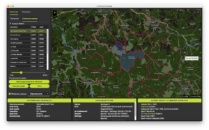 Une fois la liste des résultats affichée, en cliquant sur un nom de commune, celle-ci s’affiche sur la carte. En cliquant sur une commune voisine sur la carte, cette commune est sélectionnée dans la liste.