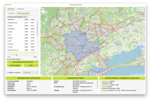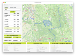 Ex : en tapant 34190 dans la barre de recherche dans l’onglet “commune”, le logiciel trouve toutes les communes dont le code postal est 34190 (Ganges et alentours) et Oupia dont le code Insee est 34190.