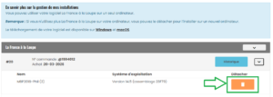 Vous accéderez ensuite à votre compte sur la boutique. Ici il vous faudra détacher le logiciel en cliquant sur l’icône orange représentant une poubelle.